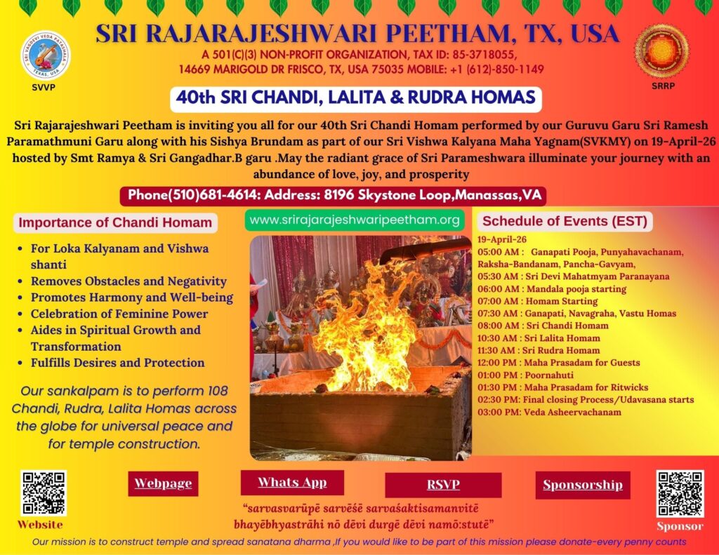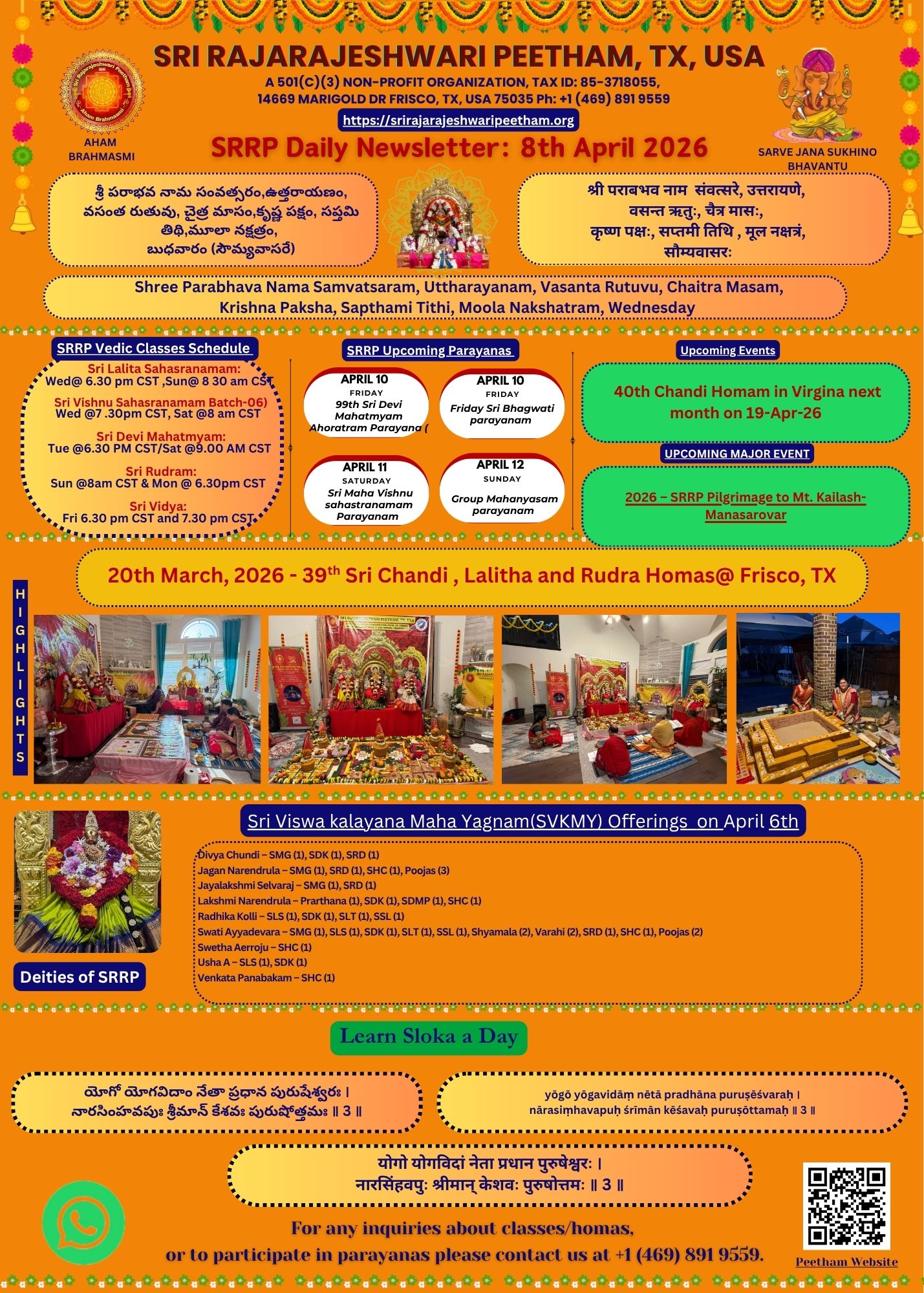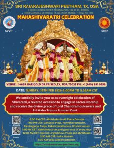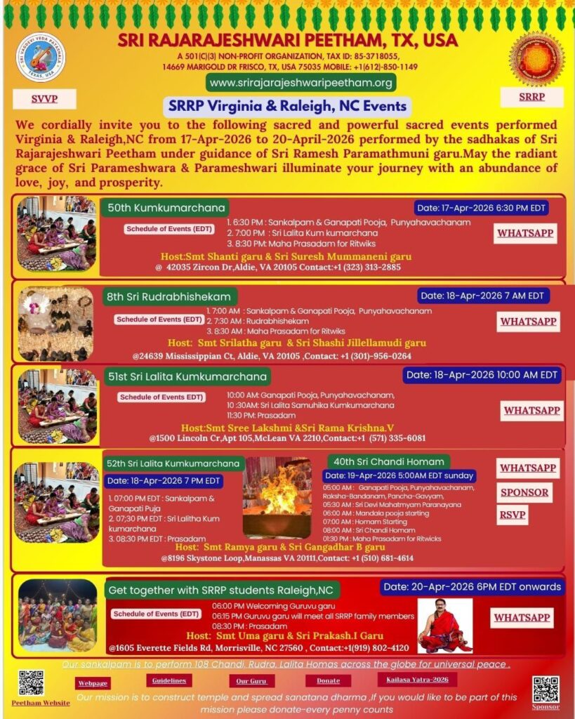 Our Guru Sri Ramesh Paramathmuni (Sri Swaprakashanada Natha) Garu is the founder of a nonprofit organization, Sri Rajarajeshwari Peetham, in Frisco, TX, USA, in the year 2019.