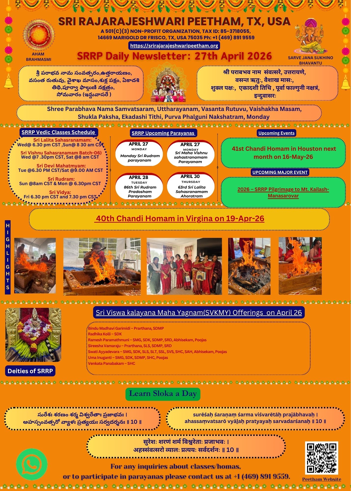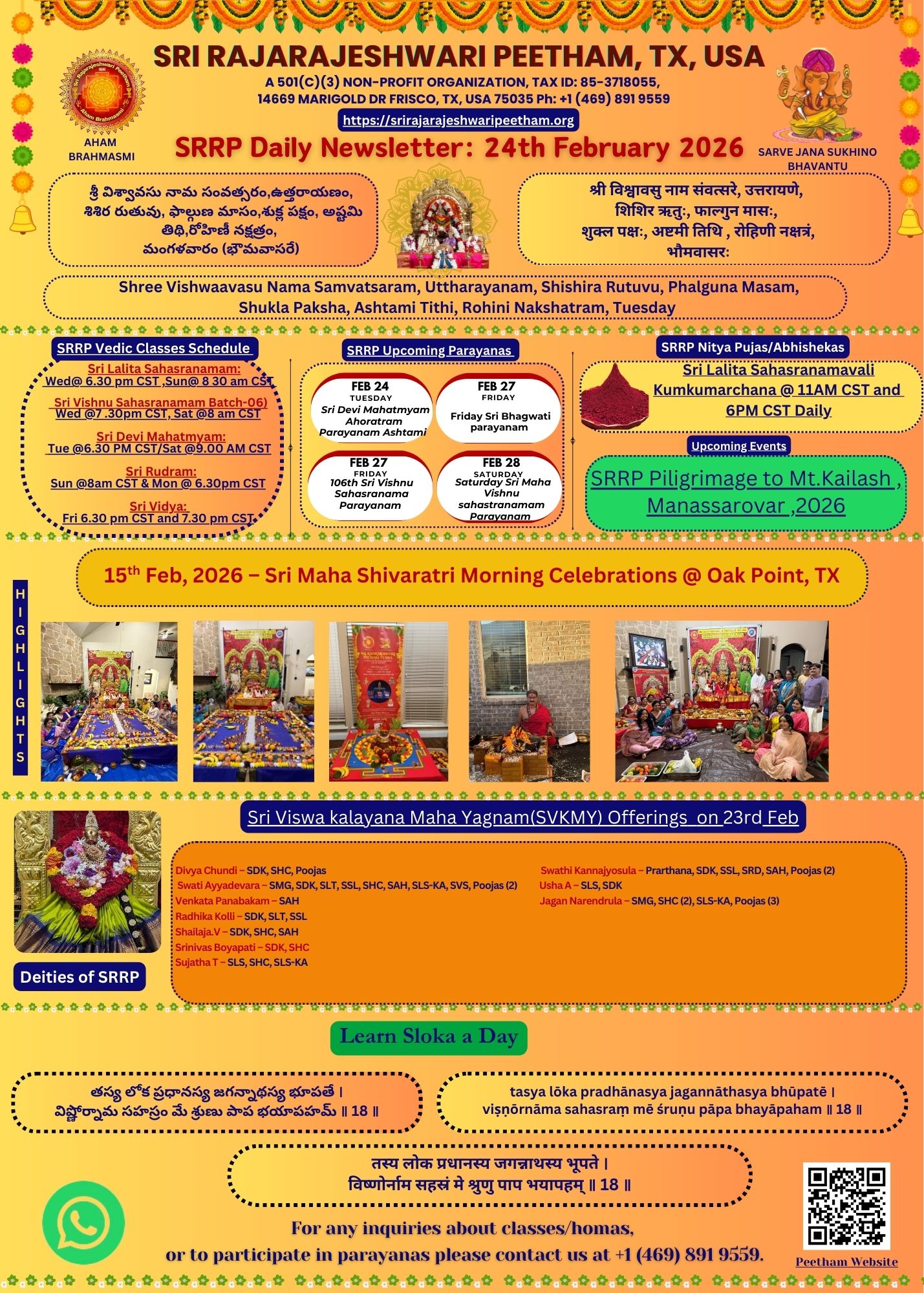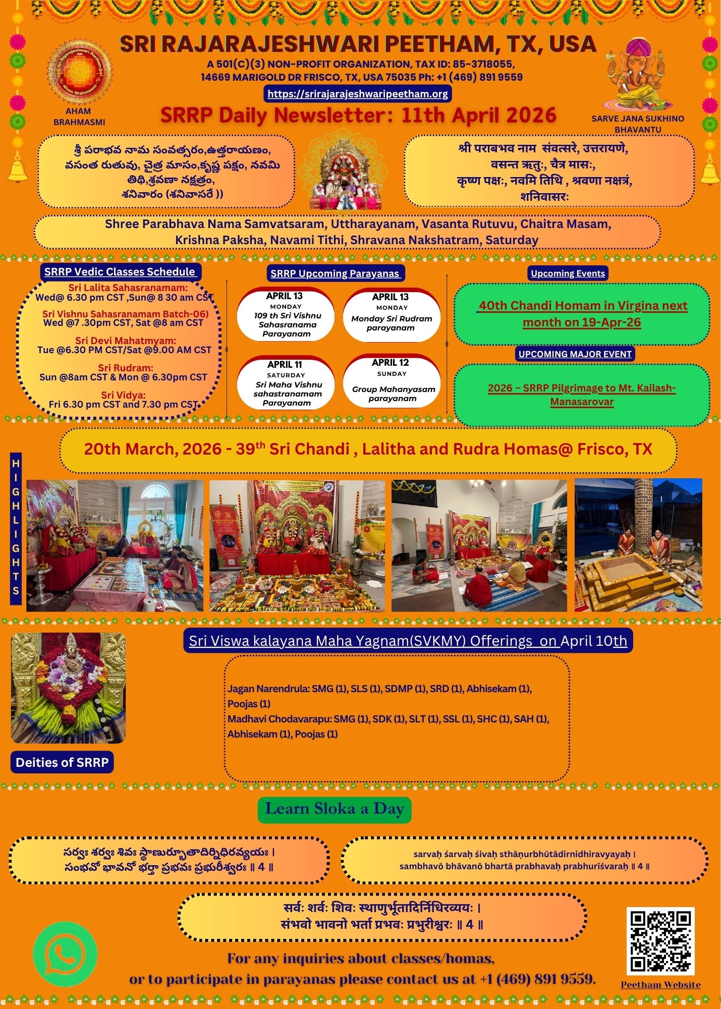 Our Guru Sri Ramesh Paramathmuni (Sri Swaprakashanada Natha) Garu is the founder of a nonprofit organization, Sri Rajarajeshwari Peetham, in Frisco, TX, USA, in the year 2019.