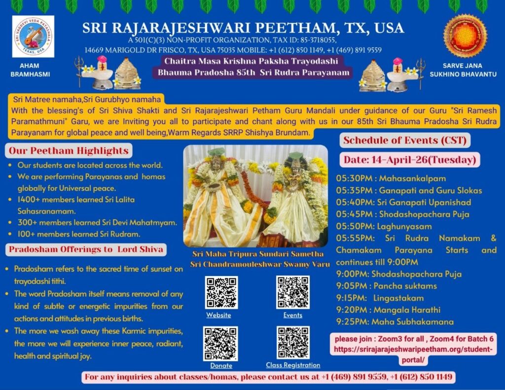 The RAJARAJESHWARI PEETHAM temple in TX USA will offer you and your family fresh air of spirituality and is full steam under construction with a target opening in 2025. Please join us in this effort where we create a unique and magnificent temple that will be a beacon for spiritual education and culture in accordance with the teachings of the Vedic scripture with proper chanting rules
