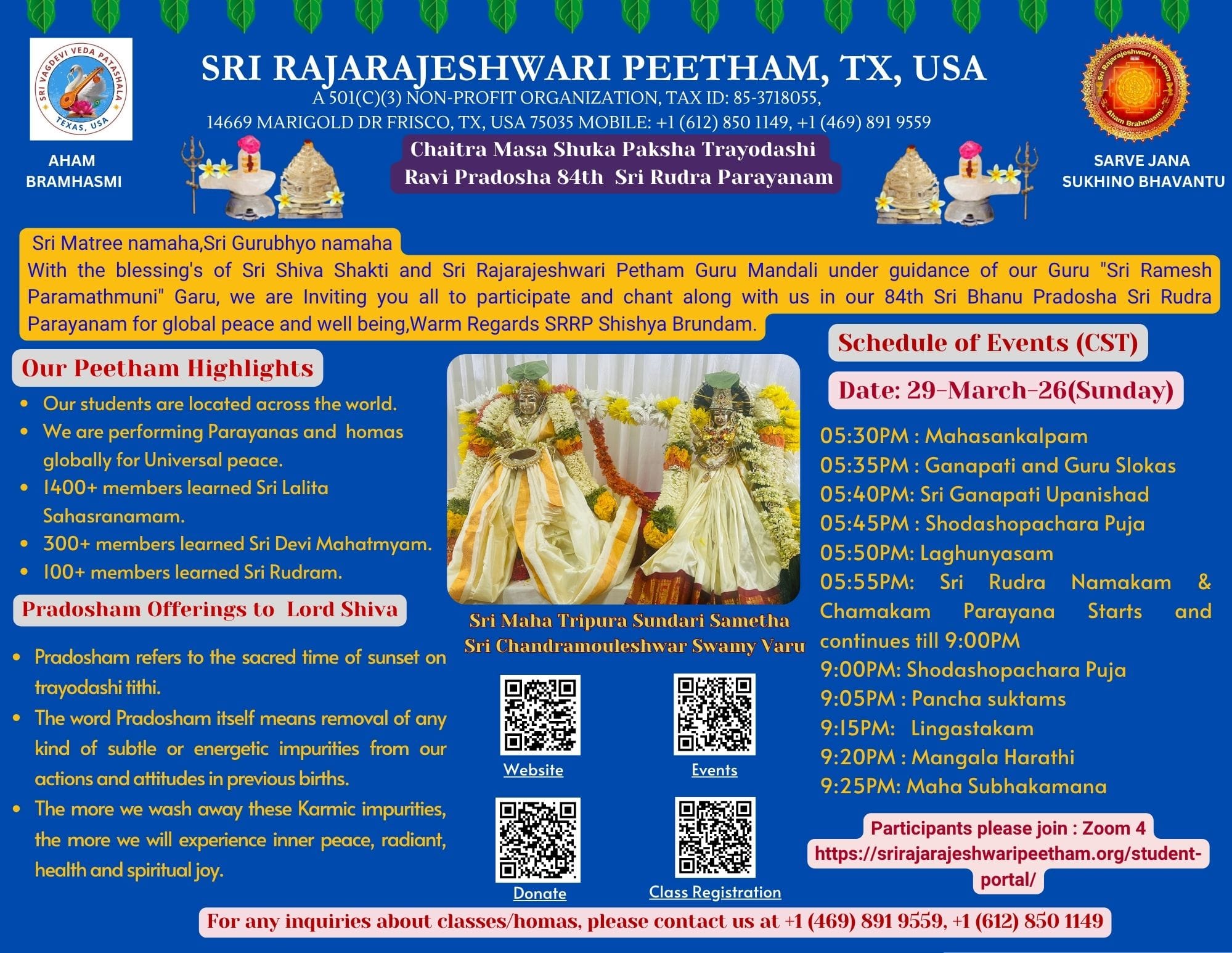 Will be chanting Ekadasha Sri Rudra Namakam Chamkam Parayanam considering Pradosham. "Shivaaya cha Shivataraaya cha