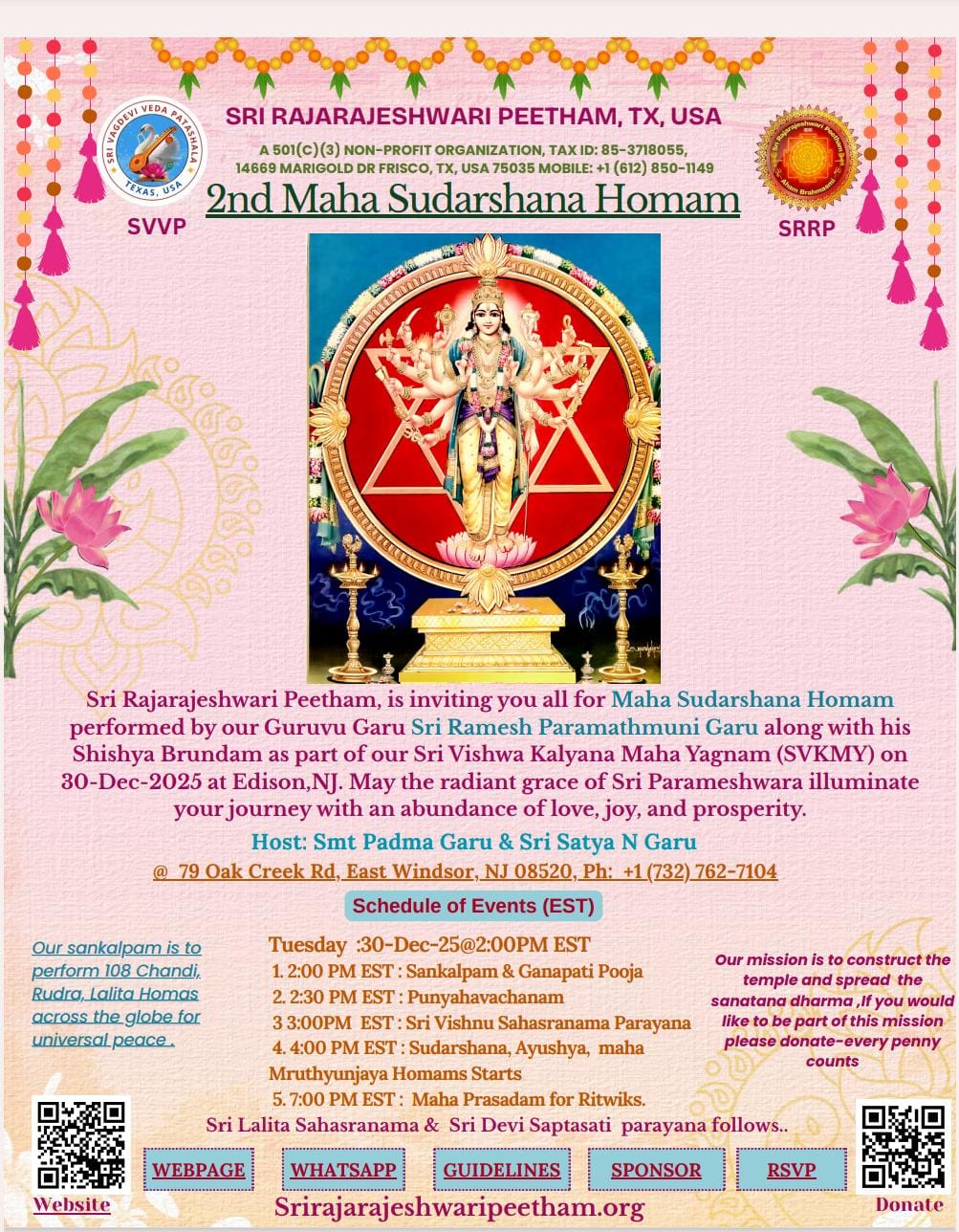 We, Sri Rajarajeshwari Peetham, are performing Sri Maha-Sudarshana homam, sacred and powerful events performed by