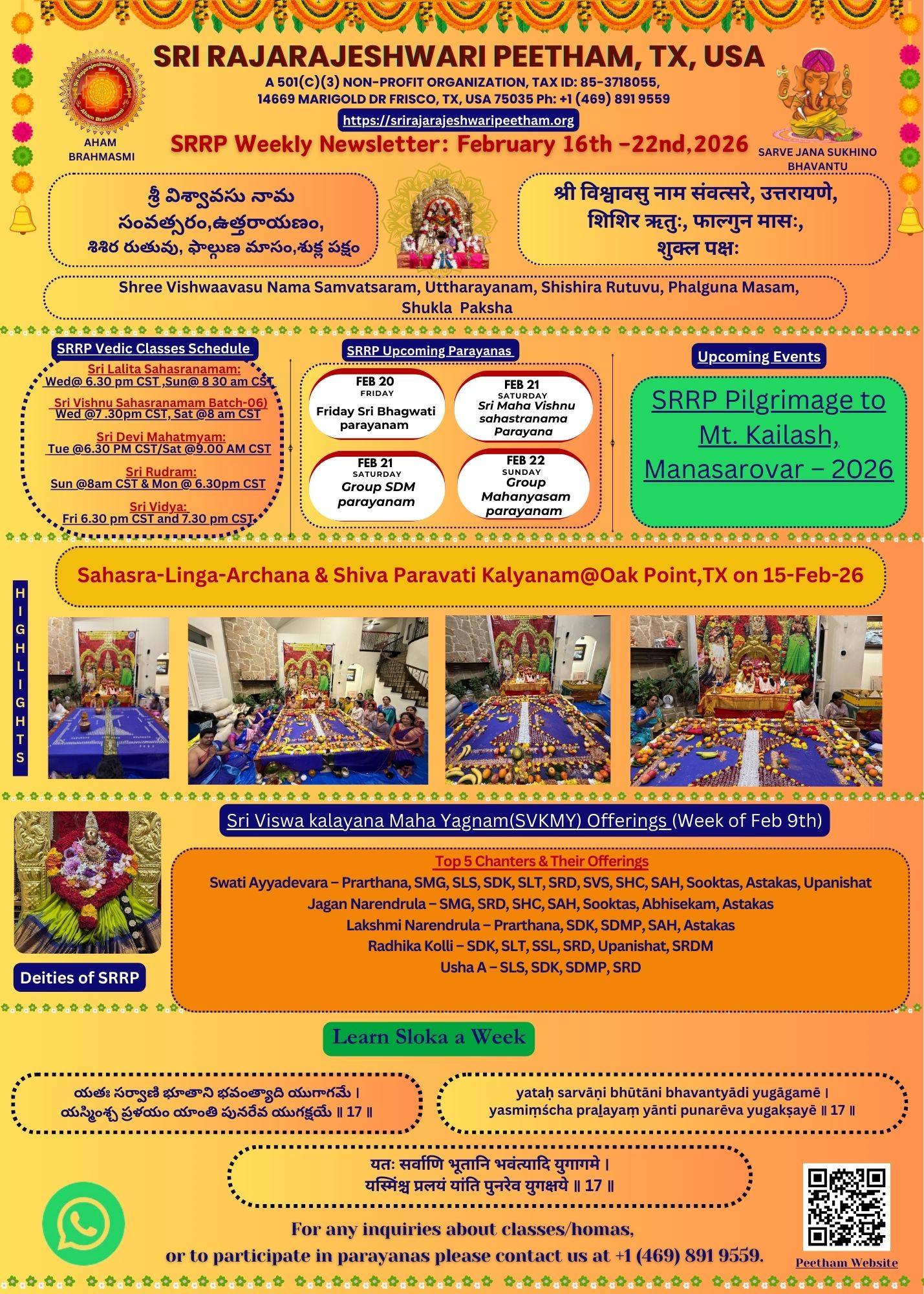 Our Guru Sri Ramesh Paramathmuni (Sri Swaprakashanada Natha) Garu is the founder of a nonprofit organization, Sri Rajarajeshwari Peetham, in Frisco, TX, USA, in the year 2019.